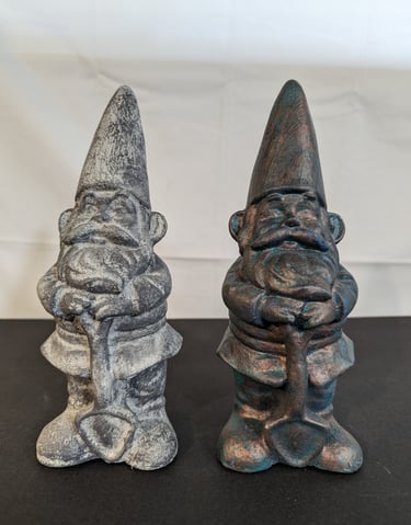 This loyal guardian is taking a break from digging holes to greet you. Gnomes love to dig. The 10 inch Gnome comes with an optional and detachable base.