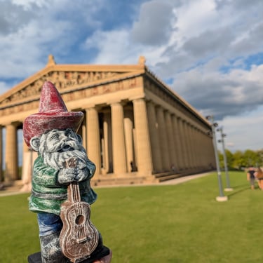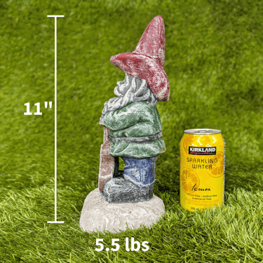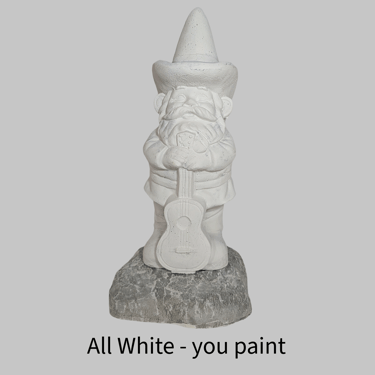 He's a dreamer. This guitar-strumming gnome has left his quiet garden paradise for the bright lights of Music City USA (aka Nashville TN). With his trusty guitar and a notebook bursting with songs, he is hoping to make it big on Music Row and Lower Broadway. He is so ready…armed with quirky original tunes like "Gnome on the Range" and "Raindrops Keep Falling on My Shovel". This solid cement, high detail statue brings a whimsical vibe to any garden or music lover’s collection. Perfect door greeter for your guests. Add this dreamy Nashville gnome to your outdoor or indoor decor today!
