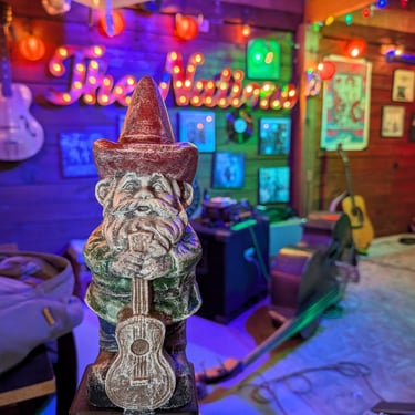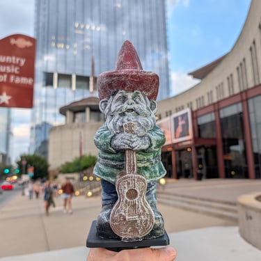 Our workshop is really in Nashville, TN so this gnome is a cowboy hat tip to all those singer songwriters that come to town with a dream. Capture their dream with your very own guitar gnome statue that will literally last for generations. Perfect gift for the musician in your life who has a dream of making it to Nashville and stand on the 'Circle' at the Grand Ole Opry or Ryman auditorium.
