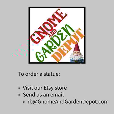 To order a statue find us on Etsy or send an email to rb@GnomeAndGardenDepot.com